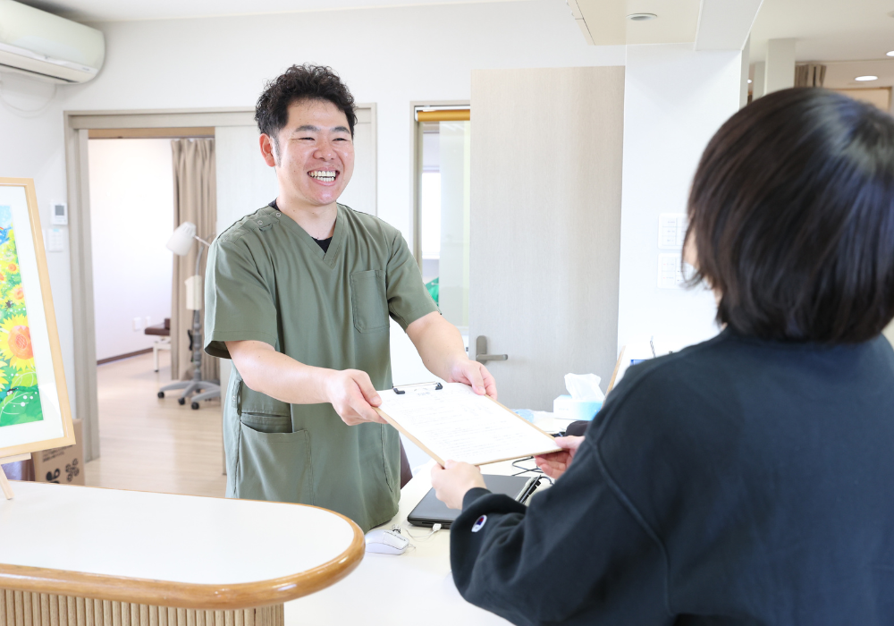 お客様のお身体の状態を知る為に、問診票に沿ってカウンセリングを行います。不安なことや、心配な点などございましたら遠慮なくご相談ください。